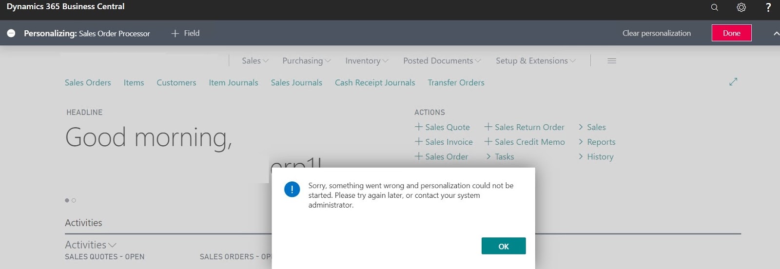 saurav-nav: MSDYN365BC 2019 Wave 2 - Something Went Wrong During Personalization.