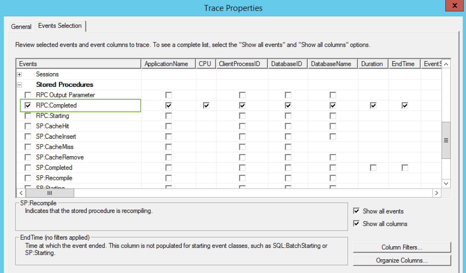 Use the following code and trace RPC:Completed events in SQL Server Profiler.