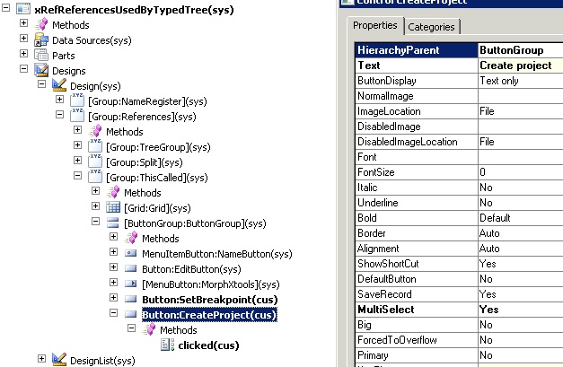============== Sometimes one needs to investigate where some field or method is used in the AOT. There may be a long list of AOT paths in the "Used by" form, and having a project with all those application elements may be a good starting point. Add a button to xRefReferencesUsedByTypedTree form, set its Text property to "Create project" and MultiSelect to Yes: Override its clicked method and use the following code: X++: void clicked() { #TreeNodeSysNodeType XrefPaths xRefPathsLocal; Set treeNodeLocalPaths; SetEnumerator treeNodeLocalPathEnumerator; SysProjectFilterRunBase project; UtilElements utilElements; ProjectNode projectNode; Dialog dialog; DialogField dialogField; super(); treeNodeLocalPaths = new Set(Types::String); for (xRefPathsLocal = xRefPaths_ds.getFirst(true) ? xRefPaths_ds.getFirst(true) : xRefPaths_ds.cursor(); xRefPathsLocal; xRefPathsLocal = xRefPaths_ds.getNext()) { treeNodeLocalPaths.add(xRefPathsLocal.Path); } if (treeNodeLocalPaths.elements() == 0) { info("There are no AOT objects to create the project from."); return; } dialog = new dialog("Create project"); dialogField = dialog.addFieldValue( extendedTypeStr(ProjectName), 'UsedByProject'); if (dialog.run()) { projectNode = SysTreeNode::createProject(any2str(dialogField.value())); project = new SysProjectFilterRunBase(); project.parmProjectNode(projectNode); project.grouping(SysProjectGrouping::AOT); treeNodeLocalPathEnumerator = treeNodeLocalPaths.getEnumerator(); while (treeNodeLocalPathEnumerator.moveNext()) { utilElements = xUtilElements::findTreeNode( treeNode::findNode( SysTreeNode::applObjectPath( treeNodeLocalPathEnumerator.current())), false); if (utilElements.RecId != 0) { project.doUtilElements(utilElements); } } project.write(); } } Источник: http://sashanazarov.blogspot.com/201...eferences.html